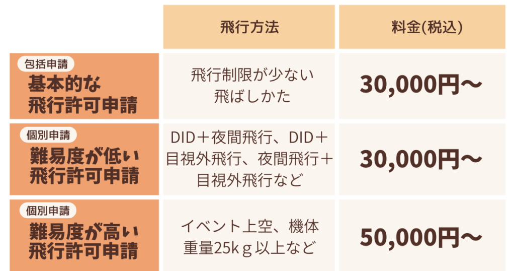 料金には、許可申請書、飛行マニュアルの作成・提出を含みます。