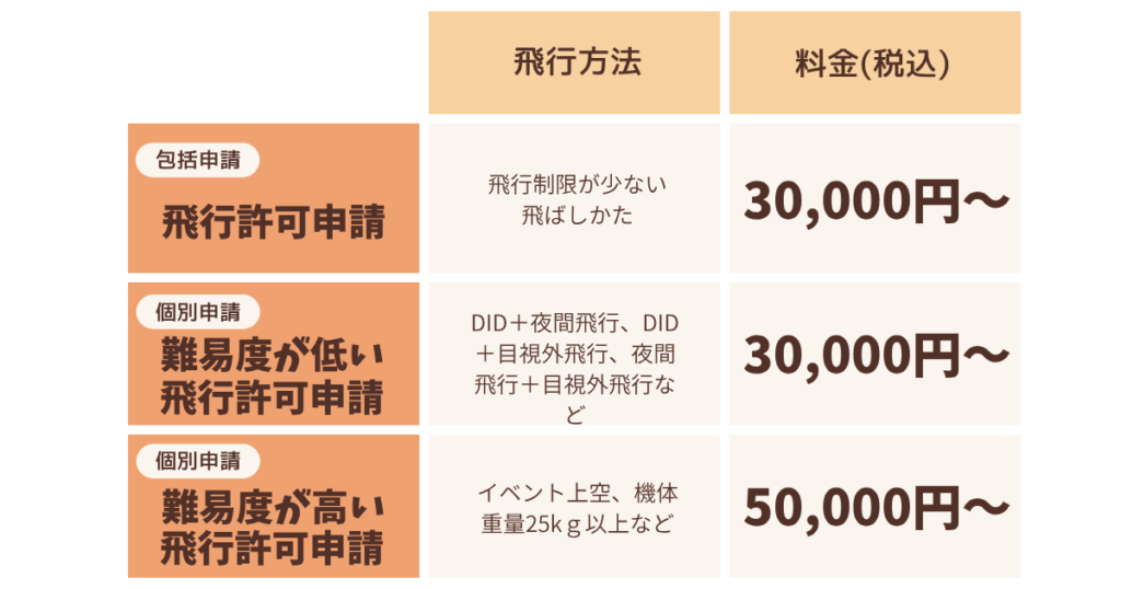 料金には、許可申請書、飛行マニュアルの作成・提出を含みます。