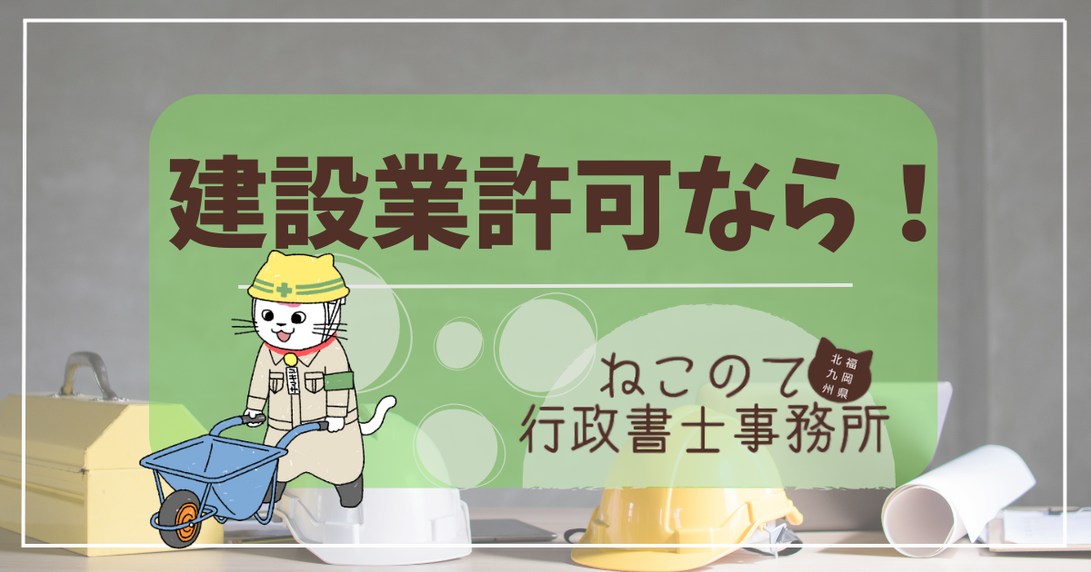 北九州市の建設業許可なら! 2021.12.012025.10.22 業務案内 500万円以上の工事を請負いたい 元請けから許可を取るように言われた 事業を拡大したい →新規申請、許可換え新規申請はこちら 建設業許可の更新の申請を行いたい 許可を受けてからそろそろ5年になる 更新の要件を満たしているか知りたい →更新申請はこちら 業種の追加をしたい 本店や営業所の場所が変わった 経営業務の管理責任者や営業所技術者が変わった →業種追加や各種変更手続きはこちら 公共工事の競争入札に参加したい 経営事項審査を受けたい 取引先から経営事項審査結果通知書の提示を求められた →経営事項審査についてはこちら その他の業務も承ります